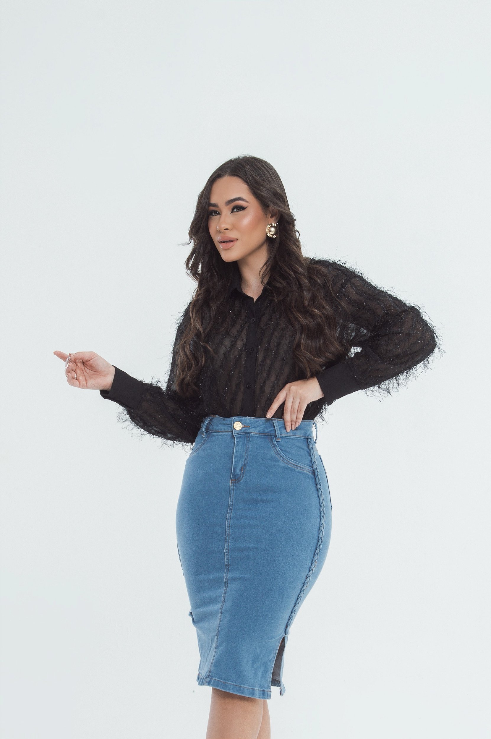 ✔️ Ideal para cultos, eventos sociais, trabalho ou para o dia a dia. Se você busca uma saia jeans elegante, confortável e que valoriza a silhueta, este modelo foi feito para você.
